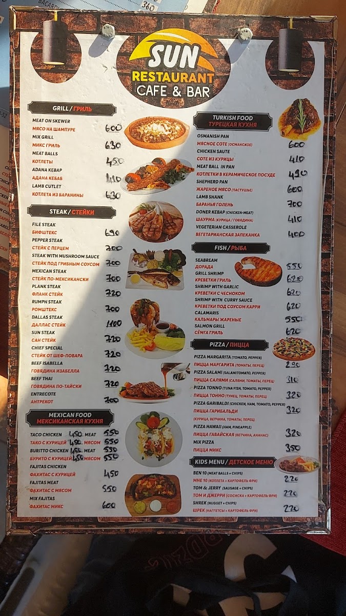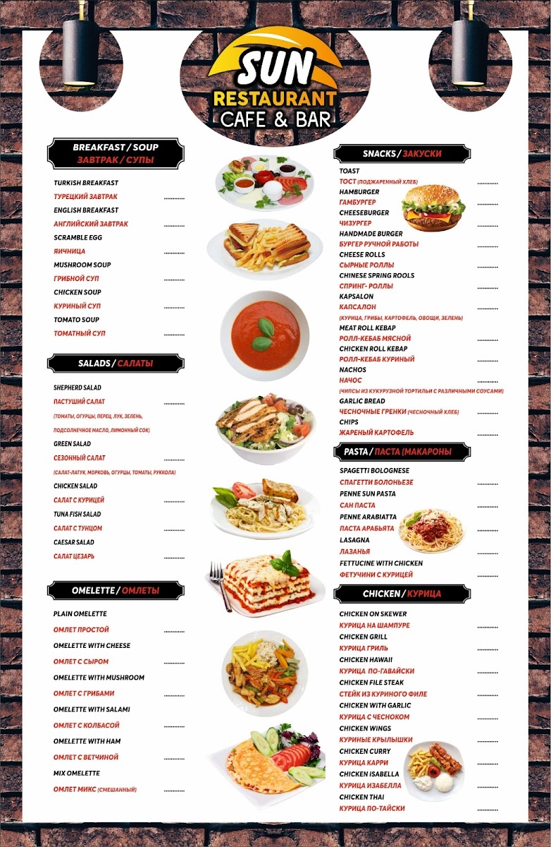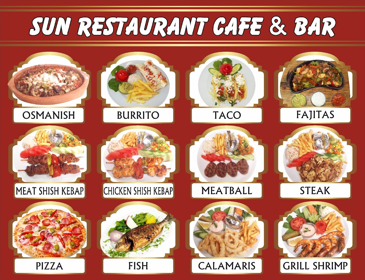 Whether you're dining with family, friends, or on a romantic night out, the menu at Sun Restaurant Cafe & Bar provides a well-rounded dining experience, with dishes to satisfy every palate.